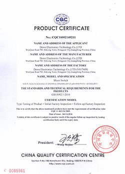 一般型微動(dòng)開(kāi)關(guān)CQC證書(shū)